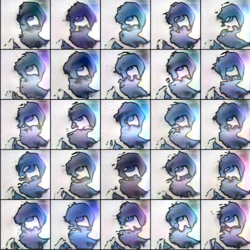 4000번째 step의 생성 이미지 인데, 모양은 거의 다 비슷하지만 색깔은 다양하게 나온다.