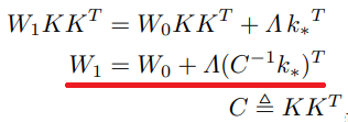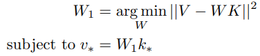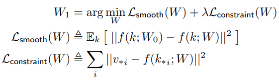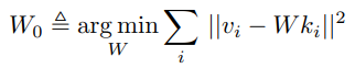 W0에 새로운 값 k* → v*를 할당하고 싶다면 새로운 행렬 W1은 다음을 충족해야 한다.