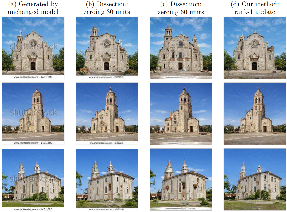 GAN과 같은 심층 생성 모델에서 네트워크가 인코딩 되는 규칙을 조작할 수 있는 방법을 소개한다.
