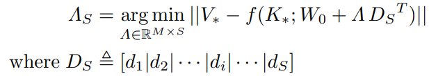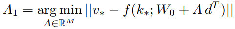 특정 비선형 레이어 f(k; W0), 새로운 입력 매핑 k* → v*, 방향 d에 대해 다음과 같이 Λ1 도출