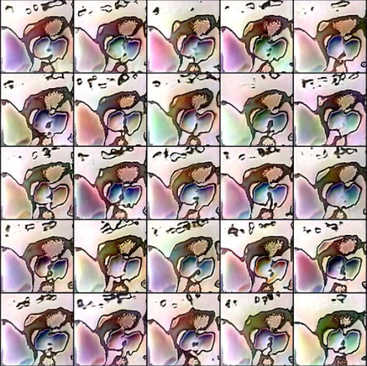 4000번째 step의 생성 이미지 인데, 모양은 거의 다 비슷하지만 색깔은 다양하게 나온다.