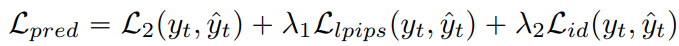 캔버스 인코딩 단계에서 잠재 코드 wt와 wt+1을 가깝게 한 것은 업데이트된 예측 yt+1이 원래 예측 yt에서 파생되도록 하는 데 도움이 되지만 ID의 미묘한 변경으로 불일치가 발생할 수 있다. 따라서 정체성 임베딩 단계에서는 연속적인 이미지 예측 간의 기본 정체성을 유지하여 의미론적 일관성을 보장한다.