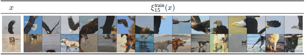 훈련에는 pν(x)로 근사하려는 분포 p(x)를 가진 데이터셋 X가 제공되며 ξk는 쿼리 예제 x에 대해 CLIP feature 공간에서 코사인 유사도 d(x,y)로 k-최근접 이웃을 검색한다.