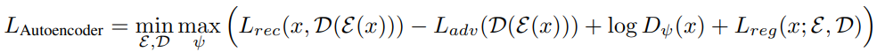 패치 기반 판별자 Dψ가 재구성 이미지 D(E(x))와 원본 이미지를 구별하도록 적대적 방식으로 훈련하고 지각 손실항과 정규화항 추가.