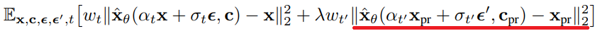 사전 훈련된 확산 모델의 finetuning 이전 샘플러에서 컨디셔닝 벡터 cpr := f(”a [클래스 명사]”)를 이용해 데이터 xpr을 얻고