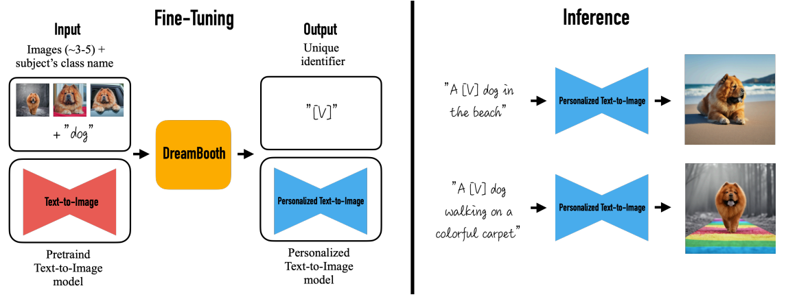 이를 희귀 토큰 식별자로 주어진 대상을 표현하고 두 단계로 작동하는 사전 훈련된 확산 기반 초해상도 text-to-image 프레임워크를 finetuning하는 기술을 제안한다.