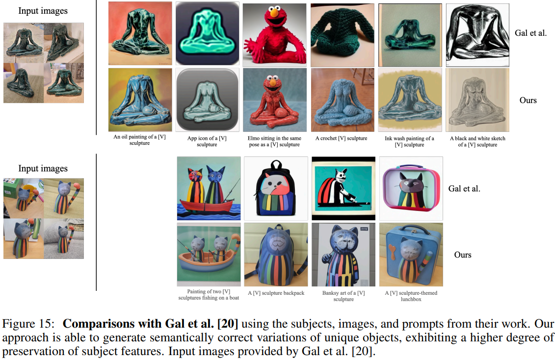 Text-to-image 확산 모델의 "개인화"를 위한 새로운 접근 방식을 제시한다. 본 논문의 목표는 대상의 이미지 몇 개(3~5)가 주어지면 고유 식별자로 합성될 수 있도록 모델의 출력 도메인에 대상을 이식하는 것이다.