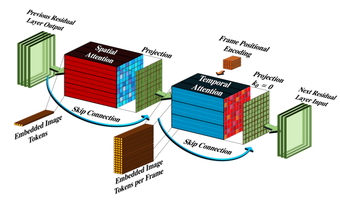 기존의 공간 2D attention 이후에 시간 1D attention 적용.
