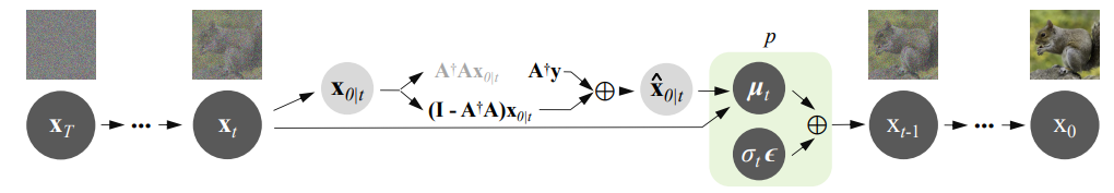 xt-1은 말하자면 x̂0ㅣt의 노이즈 추가 버전이며, 추가되는 노이즈는 계속해서 range-null space 간의 불일치를 지운다.