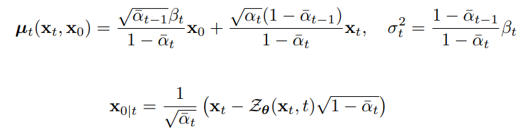 확산 모델의 학습은 사후 분포 p(xt−1|xt, x0)의 추정에 의존한다.