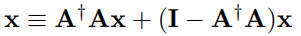 A의 range space에 있는 부분(첫째 항), A의 null space에 있는 부분으로 분해할 수 있다.