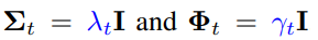 Σ는 range-space를 건드는 부분을 스케일링, Φ는 추가될 노이즈를 스케일링한다.