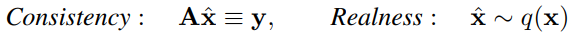 y에서 다음 두 제약 조건을 준수하는 이미지 x̂을 생성하는 것을 목표로 함. (q(x) = ground truth의 분포)