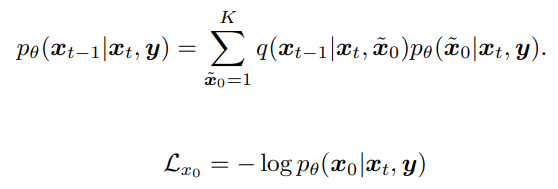 따라서 모델이 xt-1이 아닌 pθ(x̃0|xt, y)를 추정하도록 하고 xt-1을 구한다.