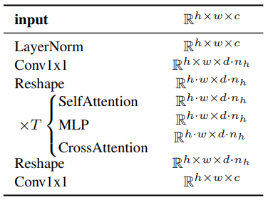 조건을 ablated U-Net에 주입하기 위해 U-Net의 self attention 계층을 T Block으로 구성된 트랜스포머로 교체한다.