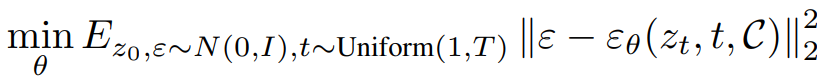 텍스트 유도 확산 모델의 네트워크 εθ의 목표 :