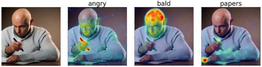 단어가 생성된 이미지에 미친 영향을 hitmap으로 표시