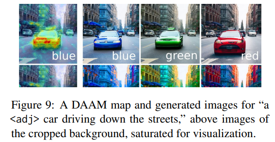 모델에서 cross attention map을 결합하여 각 단어에 대한 2차원 속성 map을 생성한다. 이것을 Diffusion Attentive Attribution Maps(DAAM) 라고 함.