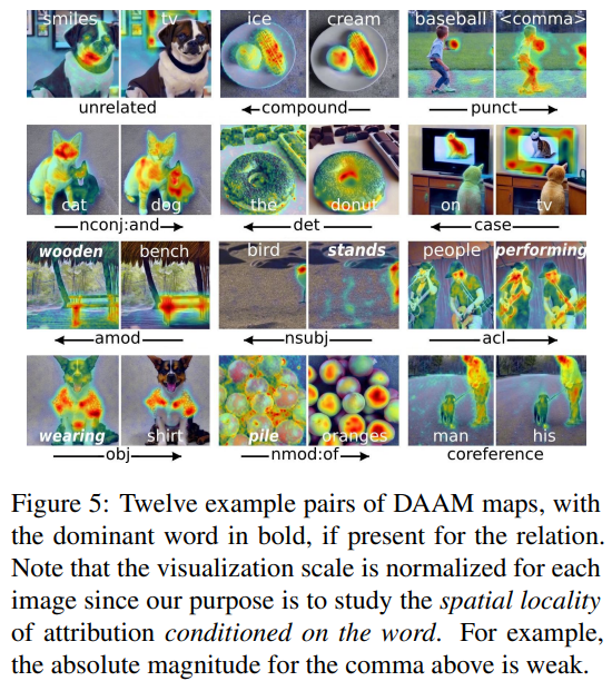 모델에서 cross attention map을 결합하여 각 단어에 대한 2차원 속성 map을 생성한다. 이것을 Diffusion Attentive Attribution Maps(DAAM) 라고 함.