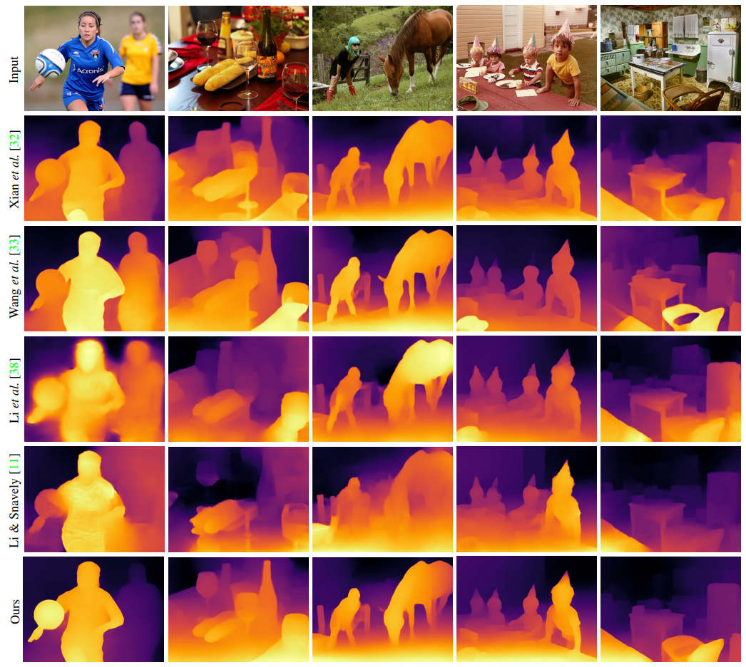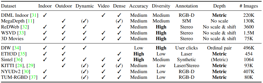 - Scale 모호성 : 일부 데이터셋의 경우 깊이는 알 수 없는 scale까지만 제공됨.