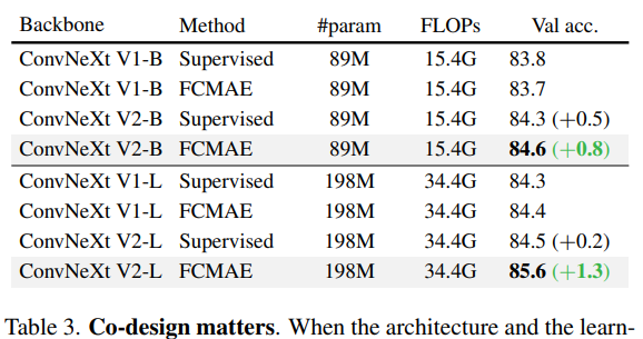 ConvNet에 masked autoencoder(MAE)와 같은 자체 지도 학습을 도입했을 때, 성능이 낮아졌다.