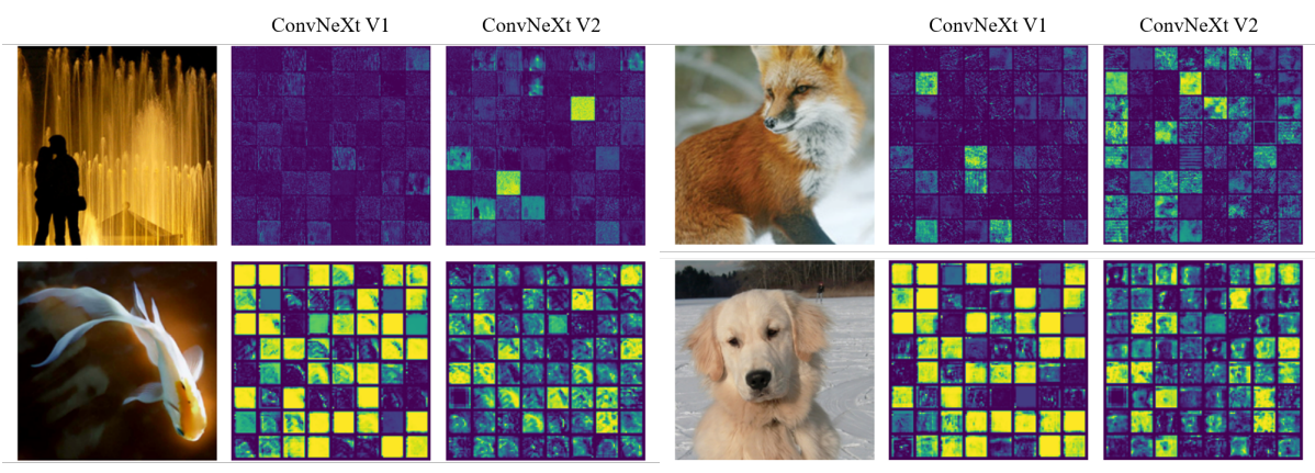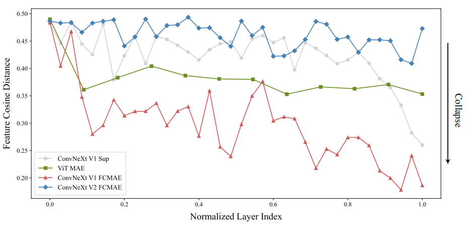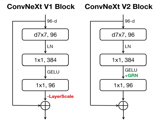 추가적인 개선으로 마스크된 입력에서 ConvNeXt를 훈련할 때 MLP 계층의 문제를 식별하고, 채널 간 feature competition을 강화하기 위해 GRN 계층을 추가한다.