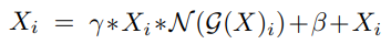 피라미터 γ, β와 잔차 연결 추가