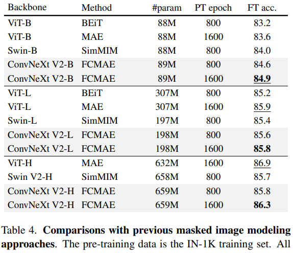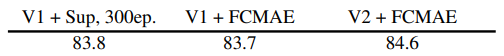 확실히 Conv + MAE인 V1 FCMAE는 바닥에 있다.