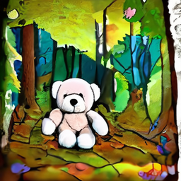 Prompt : This is a painting of teddy bear in the forest in the style of cubism