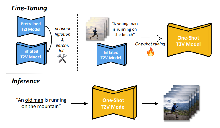 A new method for text-to-video generation using one text-video pair.