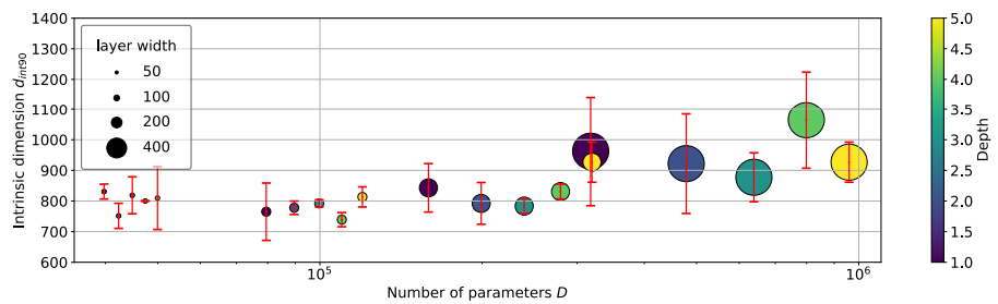 많은 문제는 생각보다 작은 고유 차원을 가지고 있으며, 주어진 데이터셋의 고유 차원은 다른 모델군 간에 거의 차이가 없다.
