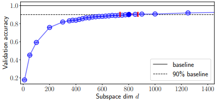 따라서 위 결과는 MNIST가 750의 고유 차원을 가지는 것이 아니고, MNIST & FC classifier의 조합이 그렇다는 것이다.
