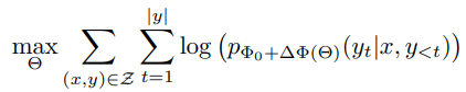 사전 훈련된 가중치 Φ0에 대한 finetuning은 context-target 데이터 쌍 x, y에 대해 Φ0 + ∆Φ로 업데이트 하는 것이다.