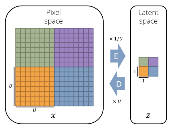 따라서 잠재 공간의 각 위치가 픽셀 공간의 UxU(디코더의 업스케일링 수치) 영역을 생성한다는 대략적인 매핑을 가정하여 픽셀 공간에서 U를 나누는 것으로 잠재 공간의 영역을 찾는다.