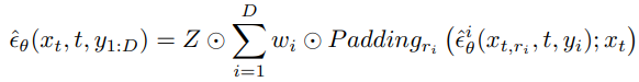 핵심 아이디어는 각 이미지 영역 ri에 대해 xt, ri를 각각 예측하는 모델 ε̂θi를 사용하는 것이다.