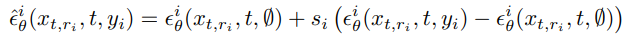핵심 아이디어는 각 이미지 영역 ri에 대해 xt, ri를 각각 예측하는 모델 ε̂θi를 사용하는 것이다.