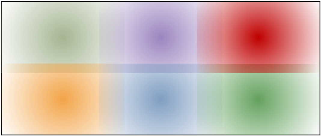 각 영역 내부에서 가우시안 가중치를 사용할 때: 부드럽게 생성됨