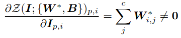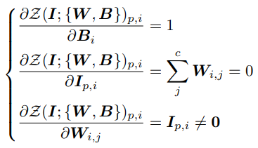 가중치 W, 편향 B, input I에 대해 zero convolution의 gradient :