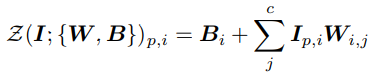 가중치 W, 편향 B, input I에 대해 zero convolution의 gradient :