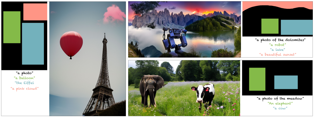 영역 마스크 세트 {Mi}, 프롬프트 세트 {yi}가 주어지면