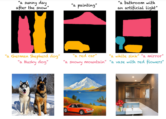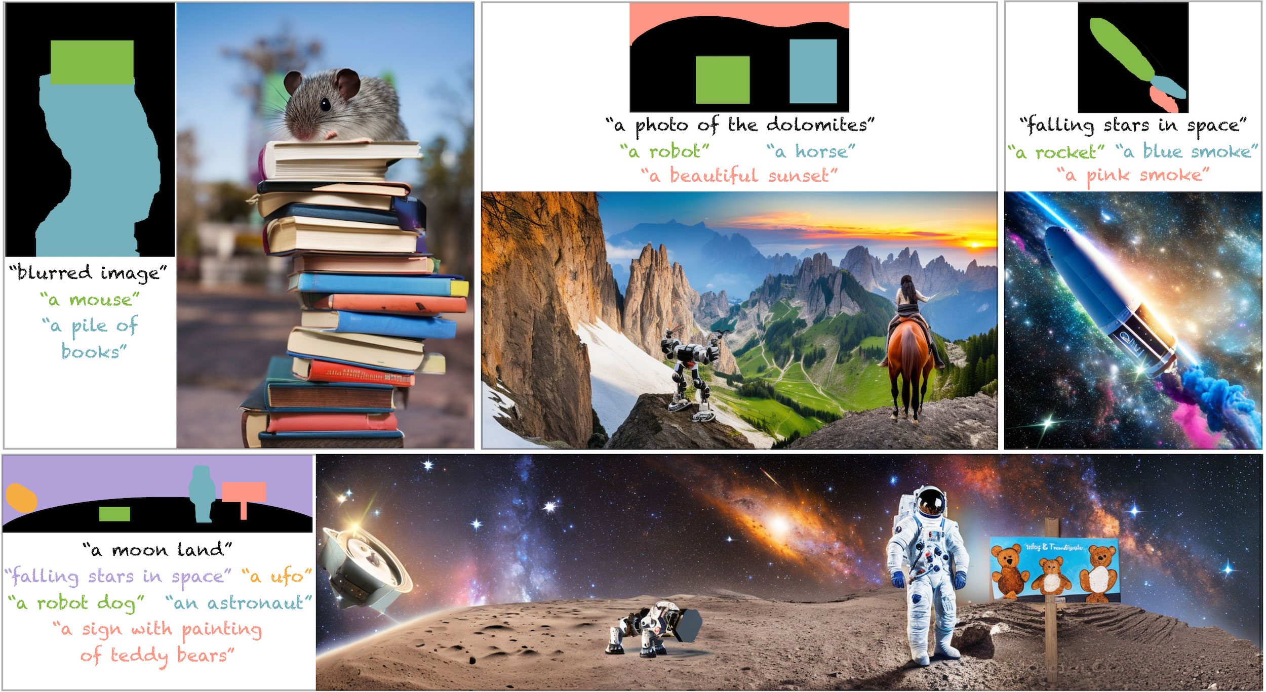 영역 마스크 세트 {Mi}, 프롬프트 세트 {yi}가 주어지면
