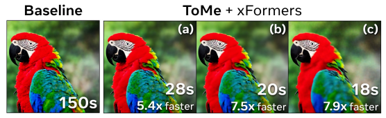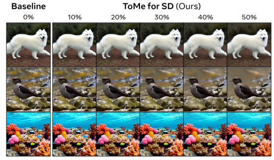 ToMe는 SD의 속도를 크게 향상할 수 있었지만 이미지 품질이 크게 저하되었다.