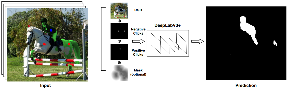 본 논문에서는 클릭을 사용자 입력으로 관심 객체에 픽셀을 추가하거나 제거하는 대화형 segmentation에 중점을 둔다.
