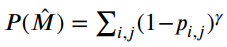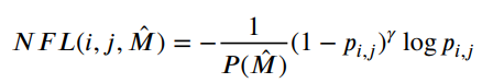 Focal loss의 가중치의 총합은 다음과 같은데, (M̂은 네트워크의 출력, [i,j]는 픽셀 좌표)