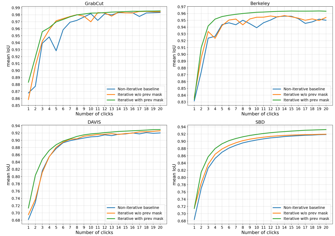 Segmentation mask를 사용하는 클릭 기반 대화형 segmentation을 위한 간단한 feed-forward 모델 제안.