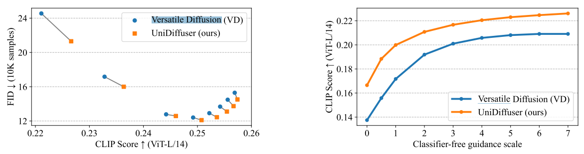다른 multi-modal 확산 모델인 Versatile Diffusion과 비교