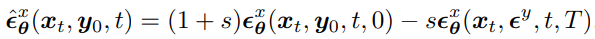 주변 분포 q(x0)를 모델링 하는 것은 xt에서 기댓값 E[εxㅣxt]를, 조건부 분포는 E[εxㅣxt,y0]를 추정하는 것으로 볼 수 있다.