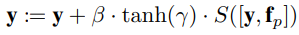 이전 계층의 출력 y와 합친 후 self attention(γ = 학습 가능 스칼라, β = 상수)