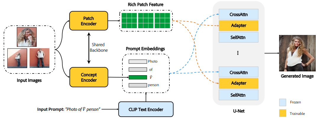 Fine tuning 없는 T2I 모델의 개인화가 목표.