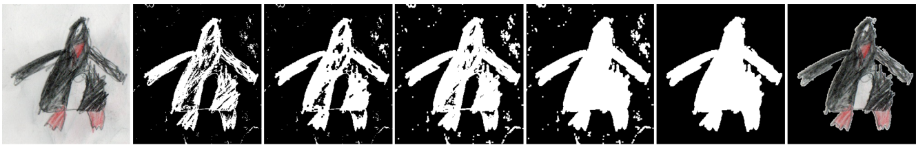 이미지 처리 과정이 없으면 segmentation의 성공률이 매우 낮다. 대부분이 배경과 그림 내부의 질감이 같은 '속이 빈' 그림이기 때문으로 추정된다.